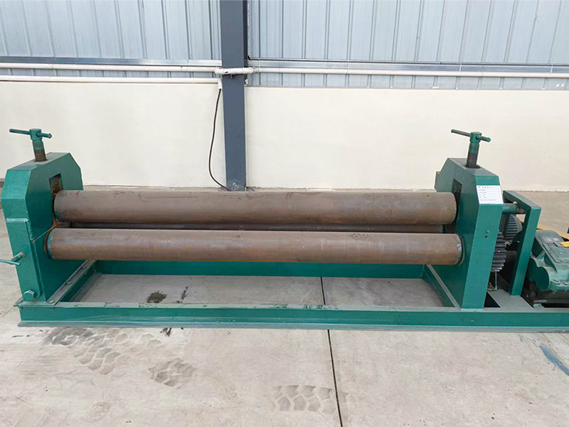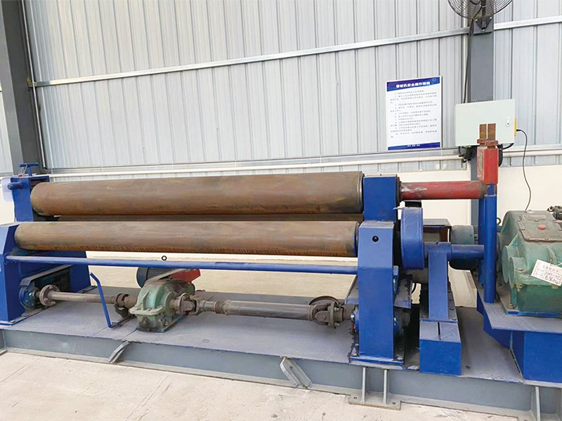 簡析卷板機的工作原理及應用範圍卷板機是對板料進行連續點彎曲的塑形機床,具有卷製O 同的形狀卷板機規格平整的塑性金屬板通過卷板機的三根工作輥(二根下輥、一根上輥) 之間,借助上輥的下壓及下輥的旋轉運動,使金屬板經過多道次連續彎曲(內層 壓縮變形,中層不變,外層拉伸變形),產生塑性變形,卷製成所需要 的圓筒、錐筒或它們的一部分。 卷板機的工作原理是卷板機上輥在兩下輥中央對稱位置通過液壓缸內的液壓油作用於活塞作垂直升降運動,通過主減速機的末級齒輪帶動兩下輥齒輪齧合作旋轉 運動,為卷製板材提供扭矩。借助上輥的下壓及下輥的旋轉運動,使金屬板經過 多道次連續彎曲,產生塑性變形,卷製成所需要的園筒、錐筒或它們的一部分。